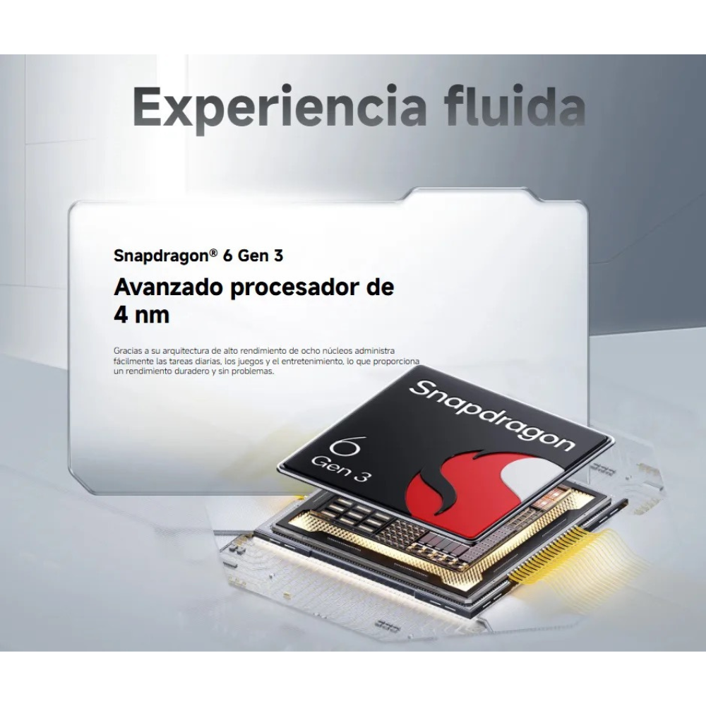 Versión Global • Cargador US ( Americano ) • Pantalla Flow AMOLED de 6,77" • Resolución: 2392 x 1080 • Frecuencia de actualización: Hasta 120 Hz • Procesador Snapdragon® 6 Gen 3 • Sistema operativo Xiaomi HyperOS 2 • Cámara principal de 50 + 2 MP • Cámara frontal de 20 MP • Batería de 5520 mAh • Carga turbo de 45 W • Hasta 18 W de carga inversa • Desbloqueo Sensor de huellas digitales en pantalla, desbloqueo facial mediante IA • Altavoces duales, aumento de volumen del 300 % • Resistencia al agua y al polvo IP66